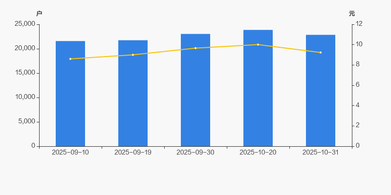 2025年9月10日至今,公司股东户数有所增长,区间涨幅为5.92%。2025年9月10日至2025年10月31日区间股价上涨7.33%。