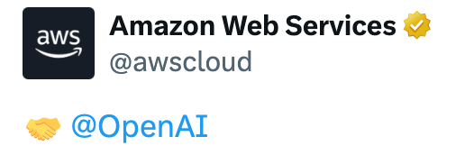 亚马逊CEO安迪·贾西(Andy Jassy)发文介绍,AWS将为OpenAI提供基础设施,运行和扩展ChatGPT的推理、训练以及智能代理(Agentic AI)工作负载。OpenAI将立即开始使用AWS的基础设施,预计所有算力容量将在明年年底前完成部署,并具备在2027年及以后继续扩展的能力。