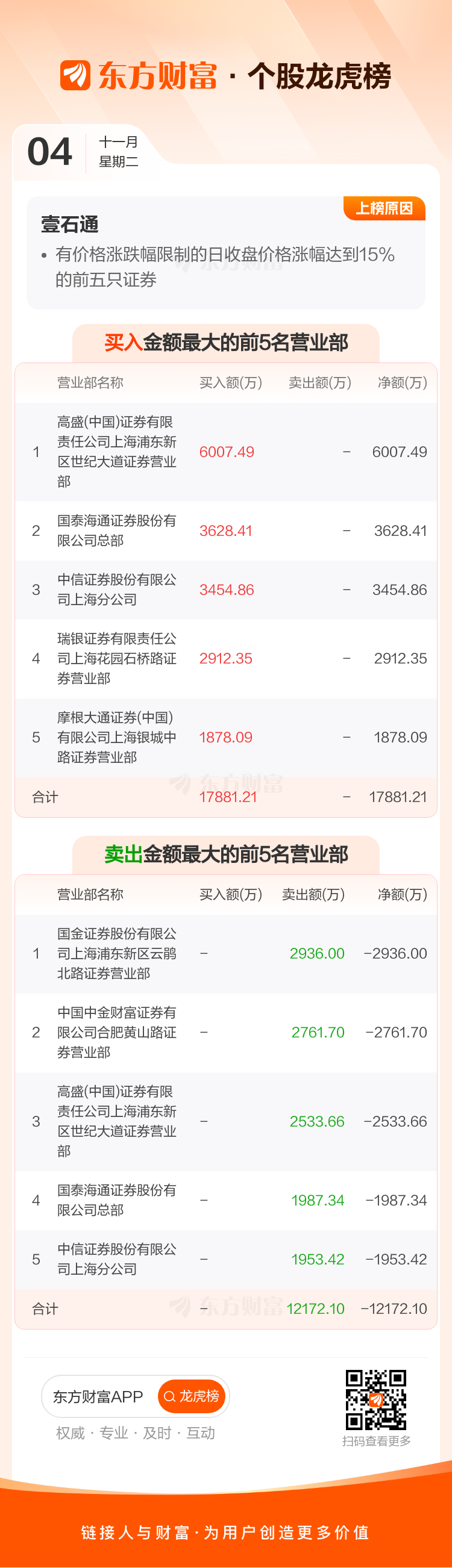 壹石通(688733)龙虎榜数据(11-04)