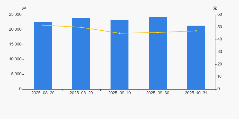 2025年8月20日至今,公司股东户数有所下降,区间跌幅为5.22%。2025年8月20日至2025年10月31日区间股价下降8.92%。