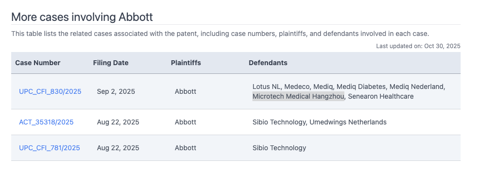 其中,界面新闻注意到,9月2日,雅培在欧洲统一专利法院(UPC)海牙地方分庭对微泰医疗也提起临时禁令程序。但截至目前未有其他更新进展。