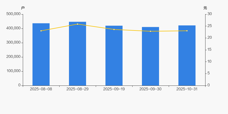 2025年8月8日至今,公司股东户数有所下降,区间跌幅为3.44%。2025年8月8日至2025年10月31日区间股价上涨0.09%。