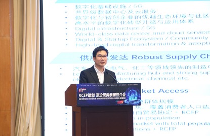 (泰王国驻华大使馆投资处公使衔参赞、泰国投资促进委员会北京办事处主任陈安作推介,图源:主办方提供)
