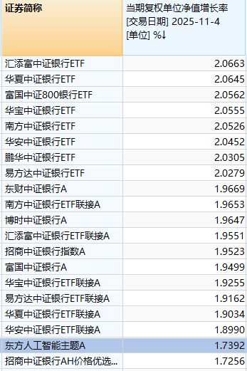 18只银行主题被动基金,今天领涨全市场