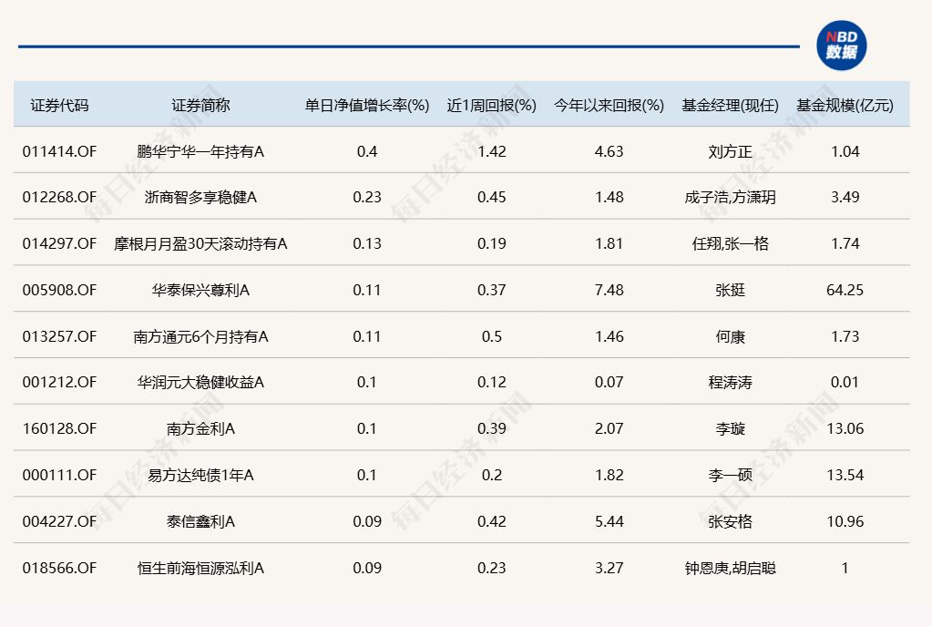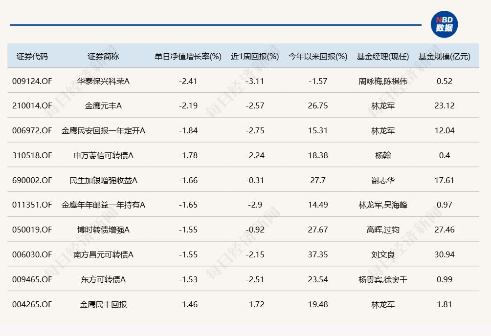 3.单日债基涨跌幅榜