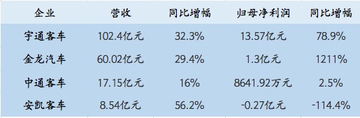 与重卡市场的格局类似,已披露2025年三季报的客车上市公司营收均实现大涨。