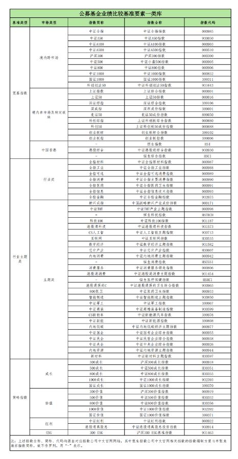 相关说明显示,为落实公募基金高质量发展行动方案要求,为公募基金管理人选择业绩比较基准提供参考,根据《指引》《操作细则》,在证监会指导下,中国证券投资基金业协会(以下简称协会)成立业绩比较基准专家工作组,在充分征求行业机构意见的基础上达成行业共识,建立、维护并公示基准库。