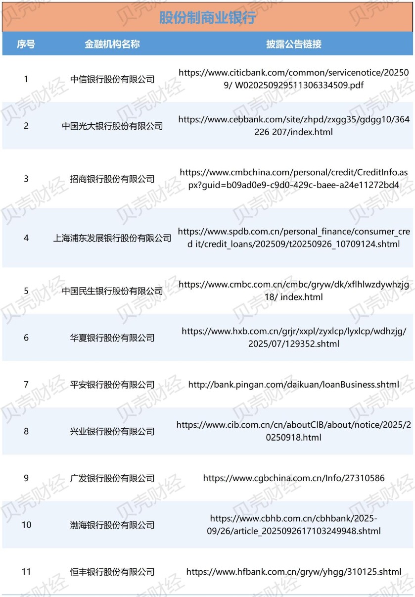 图/11家全国性股份制银行披露助贷合作机构的链接(新京报贝壳财经记者根据中互金信息制图)