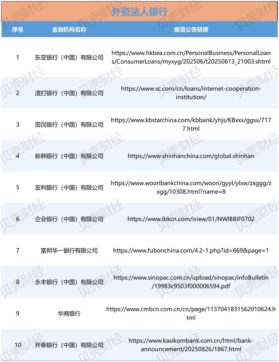 图/10家外资银行披露助贷合作机构的链接(新京报贝壳财经记者根据中互金信息制图)