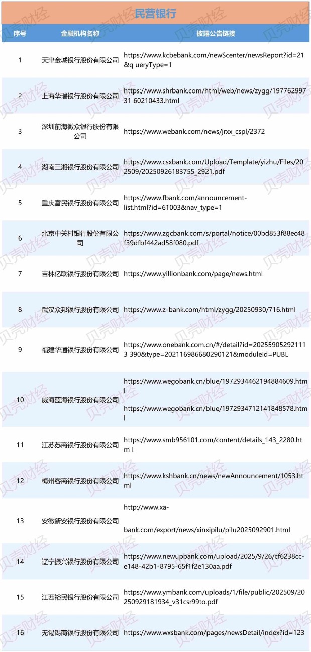 图/16家民营银行披露助贷合作机构的链接(新京报贝壳财经记者根据中互金信息制图)