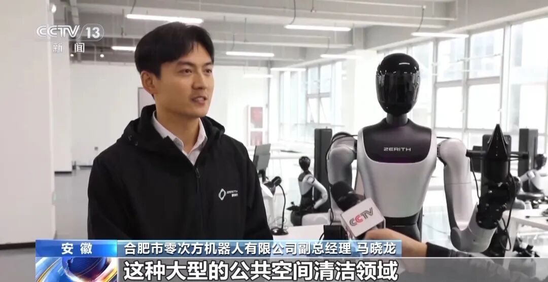 合肥市零次方机器人有限公司副总经理马晓龙:目前主要的应用场景是在写字楼、机场、商超这种大型的公共空间清洁领域,未来也会进入家庭场景,作为家庭的一个家务助手。