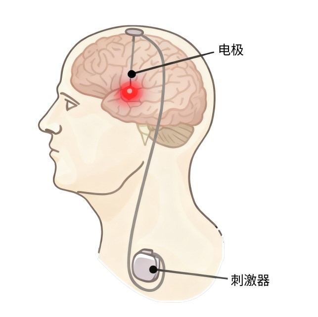 脑深部刺激系统(DBS)示意图