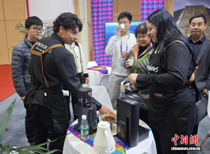 11月4日,河南郑州,中外客商品尝洪都拉斯咖啡。韩章云摄