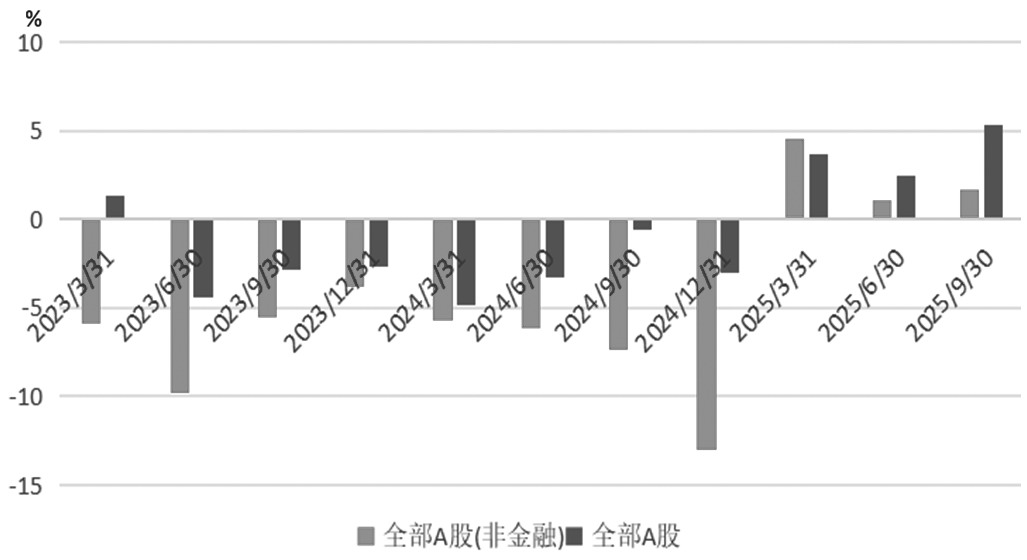 尽管二季度受美国所谓“对等关税”政策等因素干扰,上市公司业绩出现反复,但最新披露的三季报数据证实,企业盈利已重回震荡上行通道。这一趋势的形成意义重大。