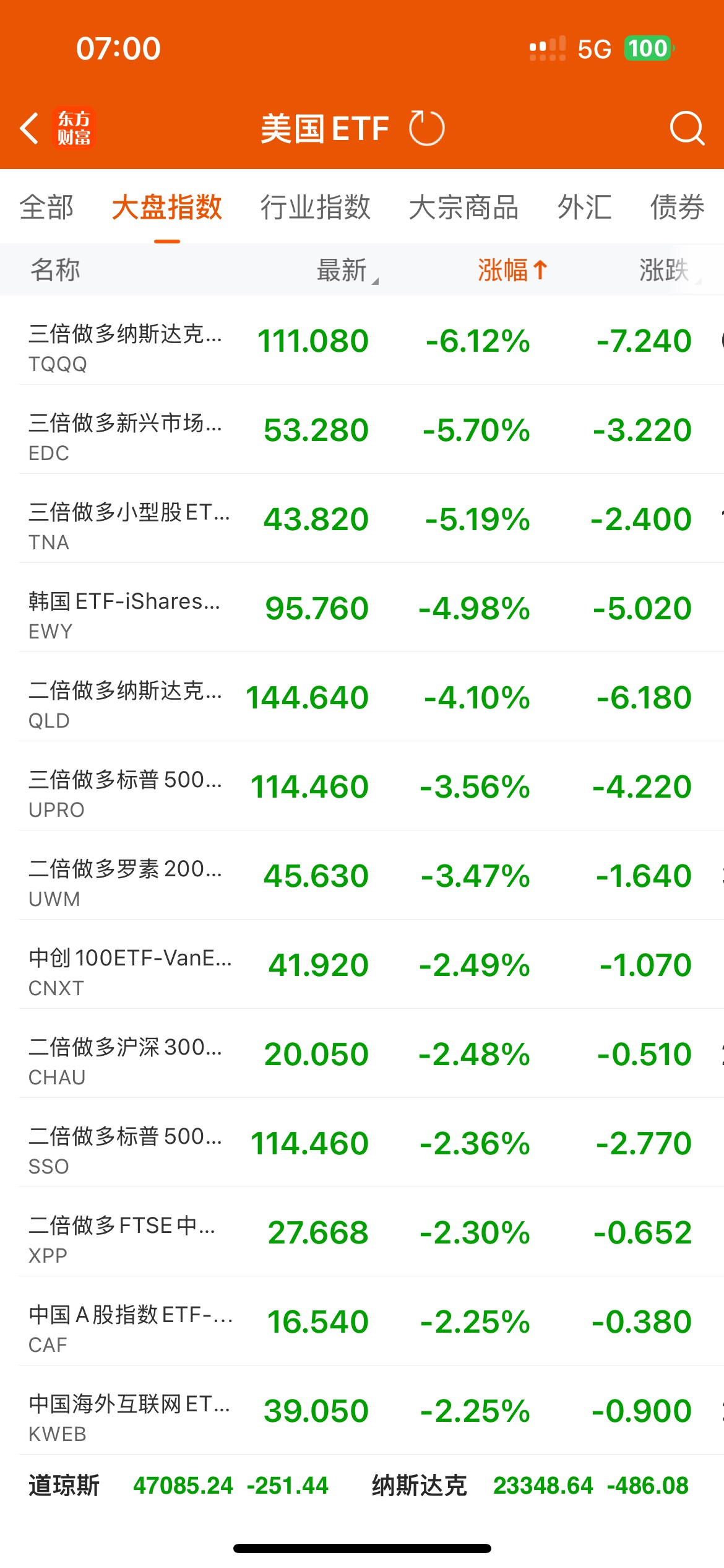 三倍做多纳指ETF-ProShares(TQQQ.US) 跌6.12%,成交额68.26亿美元。