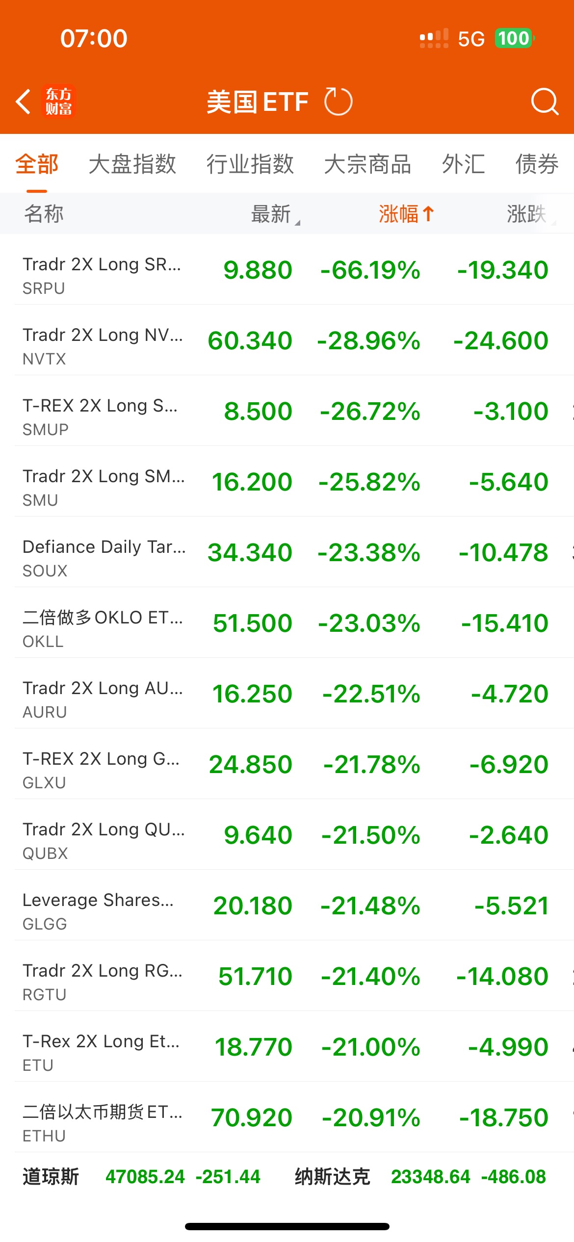 2倍做多纳斯达克100指数ETF-ProShares(QLD.US) 跌4.10%,成交额5.58亿美元。