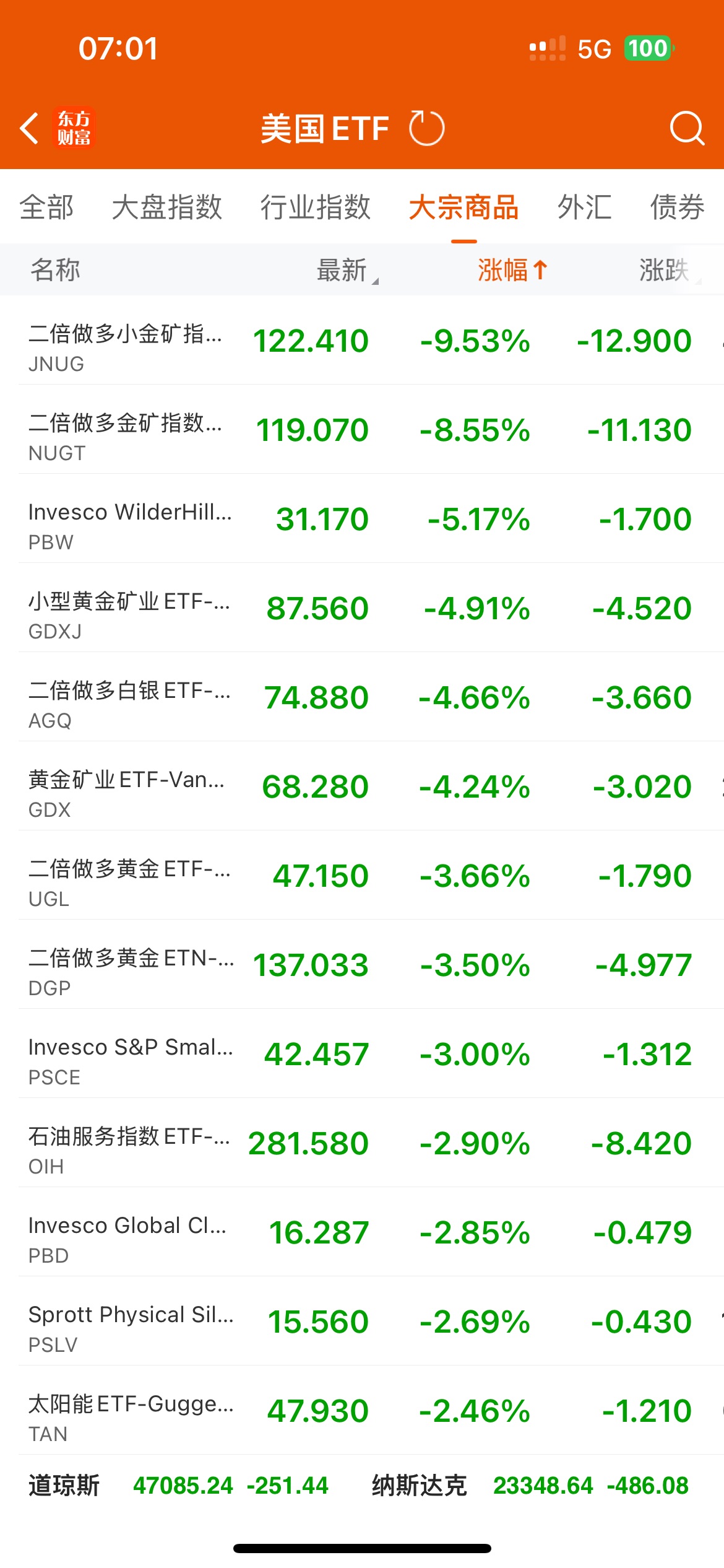 小型黄金矿业ETF-VanEck(GDXJ.US) 跌4.91%,成交额1.32亿美元。