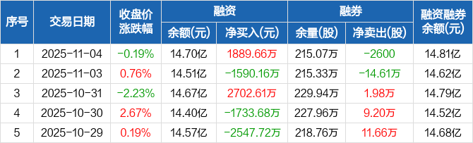 广汇能源:融资净买入1889.66万元,融资余额14.7亿元(11-04)