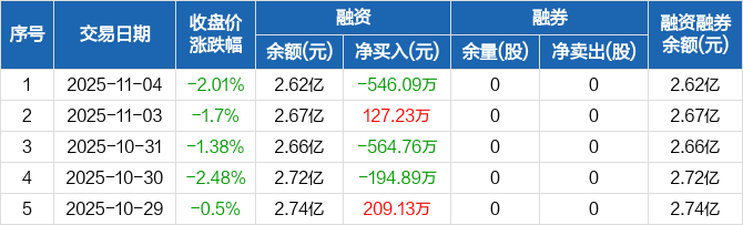 兴福电子:融资净偿还546.09万元,融资余额2.62亿元(11-04)