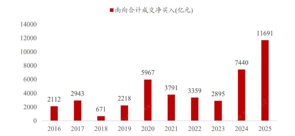 10 月份南下资金仍在大幅流入港股市场,年度累计流入规模突破 1.1 万亿元人民币。根据最新数据统计,截至 10 月 31 日,南下资金 10 月份单月累计净流入规模为 849 亿元。全年来看,截至 10 月底,今年来南下资金累计流入港股市场规模已达 11691 亿元,年度累计流入规模持续创近年来新高。