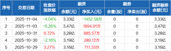 欧林生物:融资净偿还1452.58万元,融资余额3.33亿元(11-04)