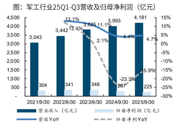 随着2025年三季度的结束,军工企业过去交付的订单有望逐步回款,伴随多项重大订单的披露,一定程度上释放出基本面修复信号。随着“十四五”收官和“十五五”开启,市场对新订单预期逐步增强,预期的逐步落地也将进一步对预期进行强化,这也将成为军工行情持续夯实基础,我们预计业绩将逐季度改善。