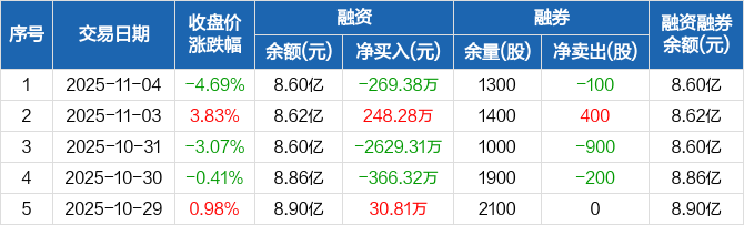 帝科股份:融资净偿还269.38万元,融资余额8.6亿元(11-04)