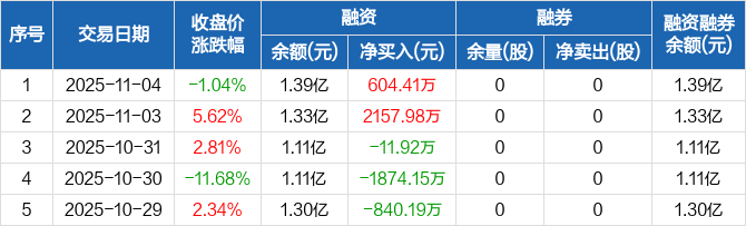 荣旗科技:融资净买入604.41万元,融资余额1.39亿元(11-04)