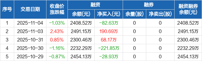 普莱得:融资净偿还82.63万元,融资余额2408.52万元(11-04)