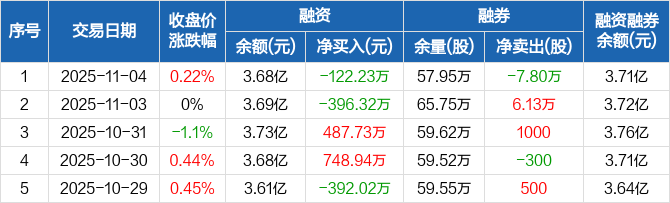 长源电力:融资净偿还122.23万元,融资余额3.68亿元(11-04)