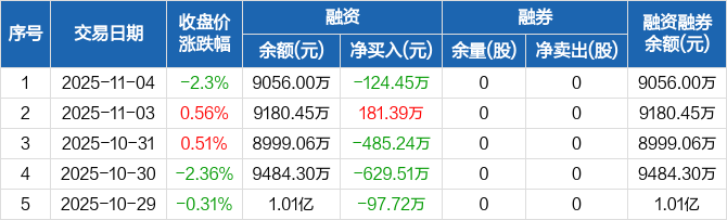 崇德科技:融资净偿还124.45万元,融资余额9056万元(11-04)