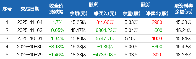 中航成飞:融资净买入811.66万元,融资余额15.25亿元(11-04)