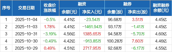 中国广核:融资净偿还23.54万元,融资余额4.41亿元(11-04)
