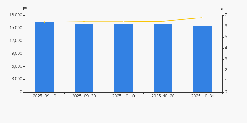 2025年9月19日至今,公司股东户数有所下降,区间跌幅为5.64%。2025年9月19日至2025年10月31日区间股价上涨6.42%。