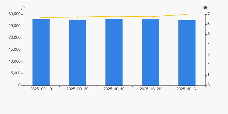 2025年9月19日至今,公司股东户数有所下降,区间跌幅为1.82%。2025年9月19日至2025年10月31日区间股价上涨4.33%。