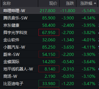 恒生科技指数跌逾2% 哔哩哔哩跌超5%