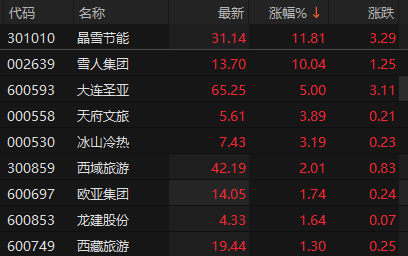 上证报中国证券网讯 11月5日早盘,冰雪经济逆势活跃,截至9时34分,雪人集团2连板,晶雪节能涨超10%,大连圣亚、天府文旅、冰山冷热、西域旅游等跟涨。