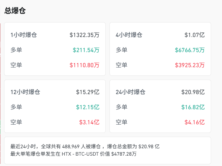 加密货币持续下挫,盘中比特币一度回落至99000美元/枚下方,截至发稿日内跌超4.4%。数据显示过去24小时,共有超48万人爆仓,20亿美元蒸发。
