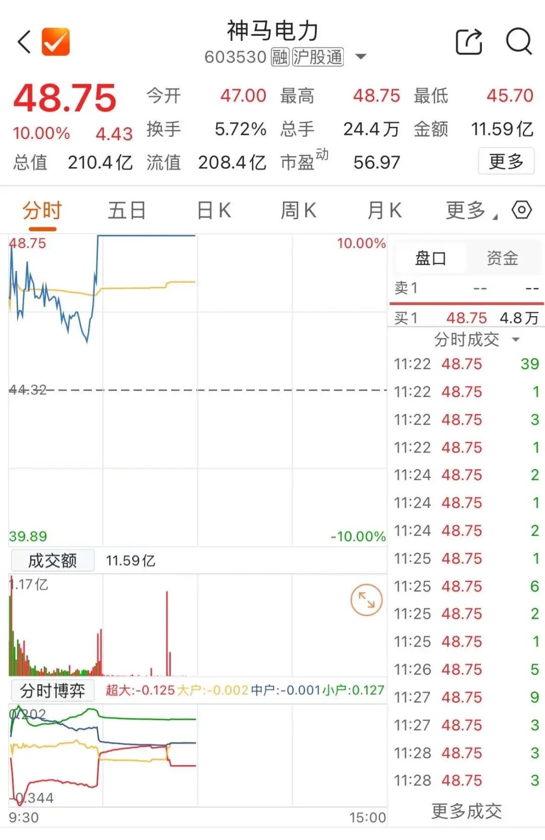 11月5日早盘,电网、储能概念持续拉升,神马电力再度涨停,走出2连板,报48.75元/股。
