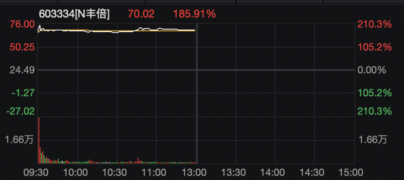 新股丰倍生物盘中涨幅一度超过210%