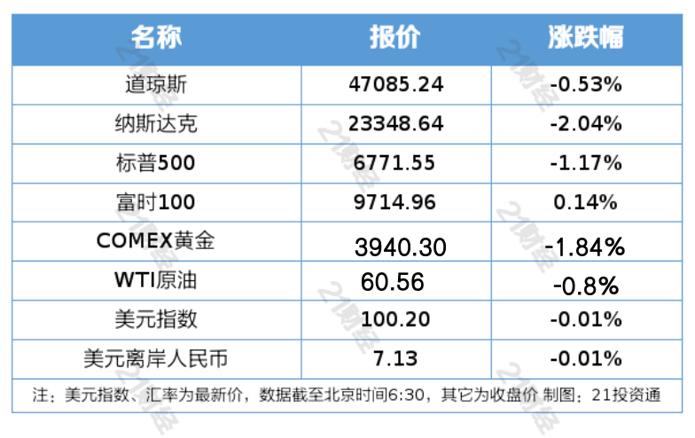 1、周二,美股三大指数集体收跌。热门中概股多数下跌,纳斯达克中国金龙指数跌2.05%。欧洲主要股指多数收跌,德国DAX30指数跌0.6%。加密币市场继续下跌,比特币跌破10万美元,以太坊跌幅超15%。