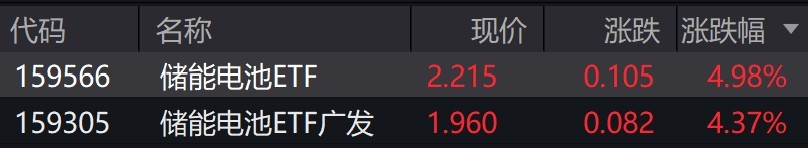 受重仓股上涨影响,储能电池ETF涨超4%。