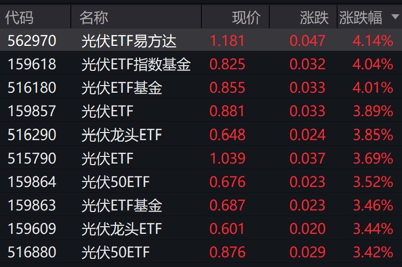 光伏概念股午后持续拉升,相关ETF涨约4%