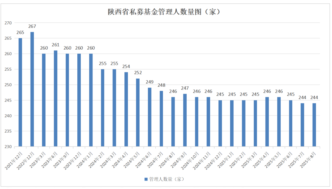 截至2024年8月底,陕西省登记私募基金管理人246家,其中股权类管理人180家。这个数字近五年来几乎停滞,2023年甚至净减少13家——陕西创投市场已进入存量博弈阶段。