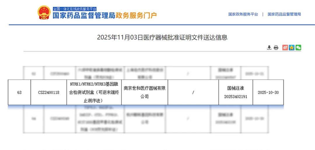 全国首个NTRK泛癌种伴随诊断高通量测序试剂盒获批上市