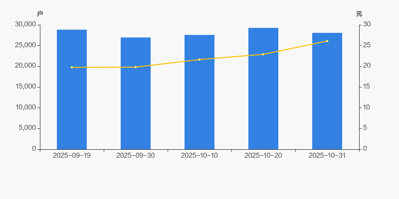 2025年9月19日至今,公司股东户数有所下降,区间跌幅为2.66%。2025年9月19日至2025年10月31日区间股价上涨32.15%。