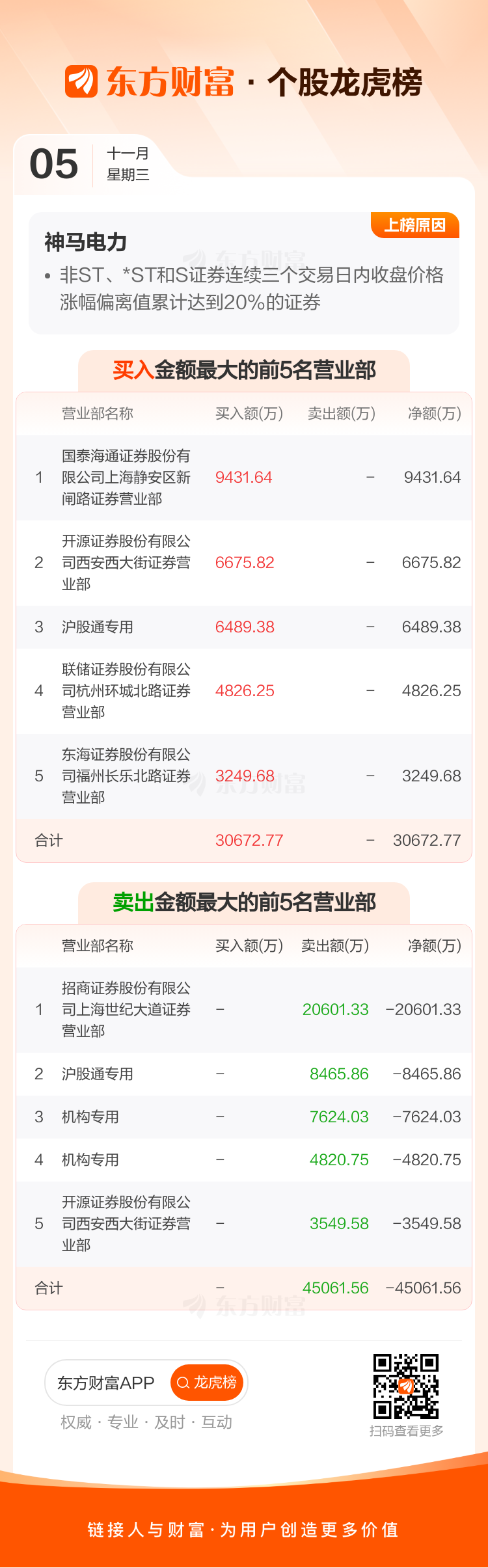 神马电力(603530)龙虎榜数据(11-05)