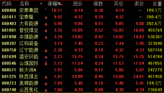 煤炭板块盘中强势拉升,截至收盘,安泰集团涨停斩获3连板,宝泰隆亦涨停,大有能源涨约6%,晋控煤业、中煤能源等涨逾3%。