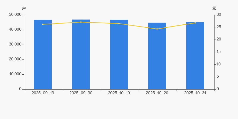 截至2025年10月31日,公司最新总股本为4.51亿股,其中流通股本为4.35亿股。户均持有流通股数量由上期的9713股下降至9623股,户均流通市值25.78万元。