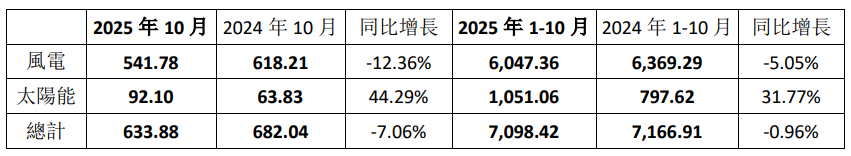 协合新能源10月风电发电量下滑,太阳能发电量上扬